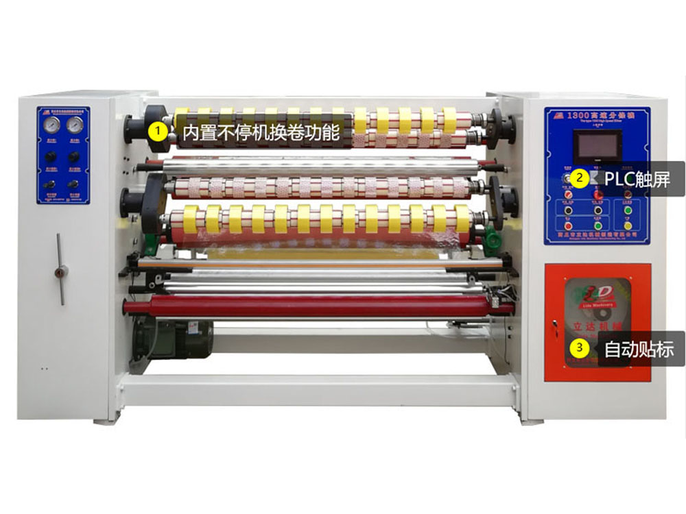 適用范圍:適用于各類(lèi)透明封箱膠帶、印字印刷封箱膠帶半成品母卷的分條加工